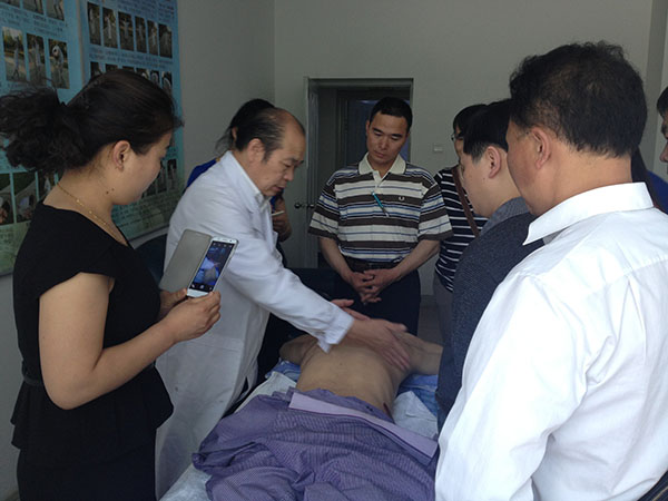 每天下午,郭老师在治疗室,结合实际病例给学员们讲述诊脉、查体、点穴、针刺、以及太乙阴阳丹的临床知识。几天下来,学员见证了很多的神奇治疗案例。有的病例,比如头痛、皮肤瘙痒、颈椎病等,当时就收到了很好的效果。有几个慢性病例是郭老师近期的几位患者,轻者如长期耳鸣睡眠不好、重者如内脏下垂尿频不禁等,郭老师都结合实际讲述了如何查体,如何进行穴位治疗。这些病例都取得了很好的治疗效果。