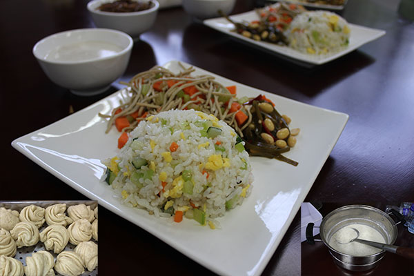 简单的饭菜,合理搭配,健康饮食。几天培训的时间里,学员们吃住都在一起。
